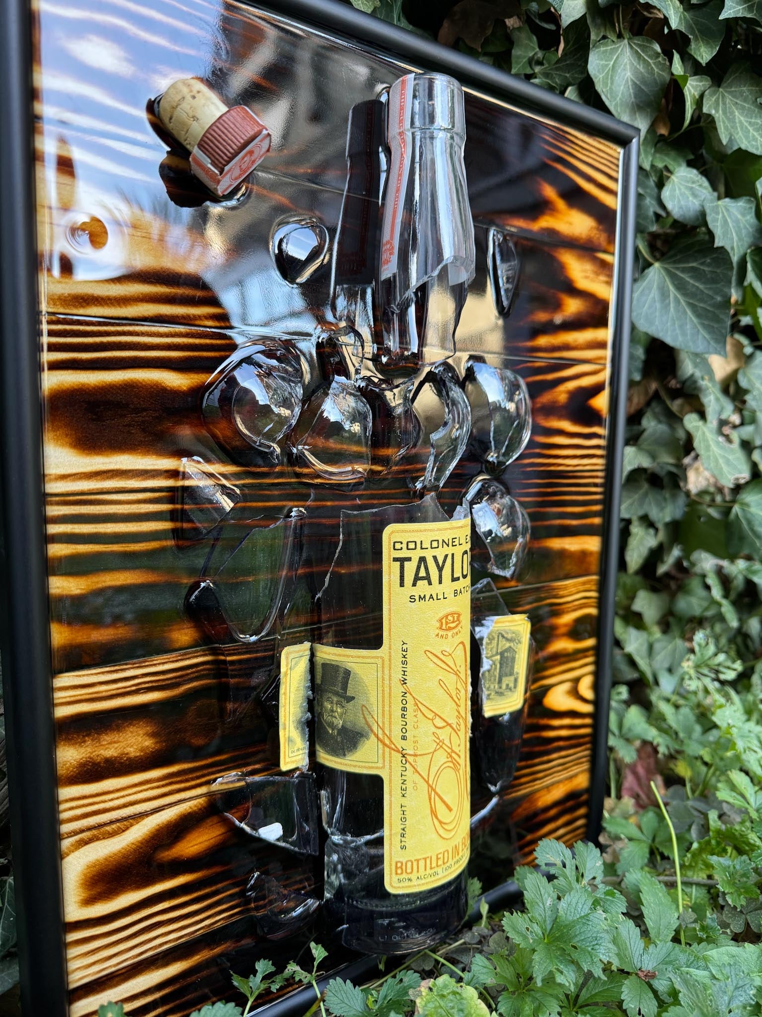 Handcrafted broken bottle design picture frame 30×40 cm – EH Taylor Small Batch Bourbon encased in epoxy resin.